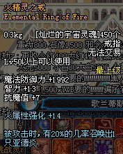 SS戒指 超强召唤物,都是来自异界的强者,这里极力推荐火精灵戒指 是你PK场里的好帮手,只需小手一挥 即可带着你的对手去打酱油 ,有运气的懦夫可以考虑。