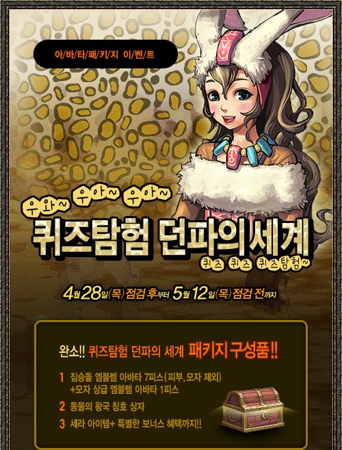 五一节到了,DNF国服在今天更新了帝国套以及五一期间的活动,很给力的抉择之沼。韩服方面也在今天更新了,动物套礼包...咳咳..现在就带大家看看韩服更新的动物套吧!