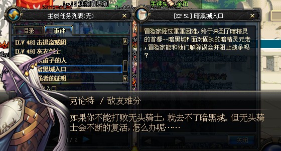 自从打通了暗黑城入口,无头骑士也被玩家打败。但是暗黑城的主线任务在60级、70级版本便戛然而止。显然80、90级版本必定会开放暗黑城内部的一些地图。例如:暗黑城郊野、暗黑城城廓、黑暗城元老院庭院、暗黑城元老院、暗黑城王宫。并且说服元老院院长夏普伦,解除暗精灵与人类之间的误会,并且和新伙伴忍者、影武者一起消灭使徒。