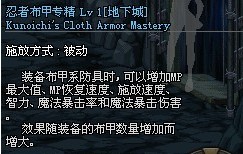 从这张图上看,忍者布甲精通比别的职业布甲精通增加了魔法暴击率和魔法暴击伤害,但是没有加精神值。