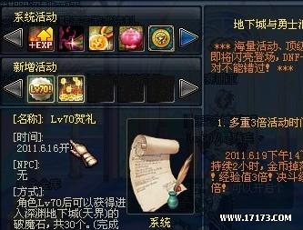 1、开放70级,开放时间6月16日,具体的看后面活动图片