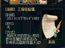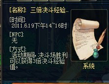 分别是三倍决斗经验、三倍人物经验和三倍金币获得率。