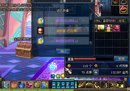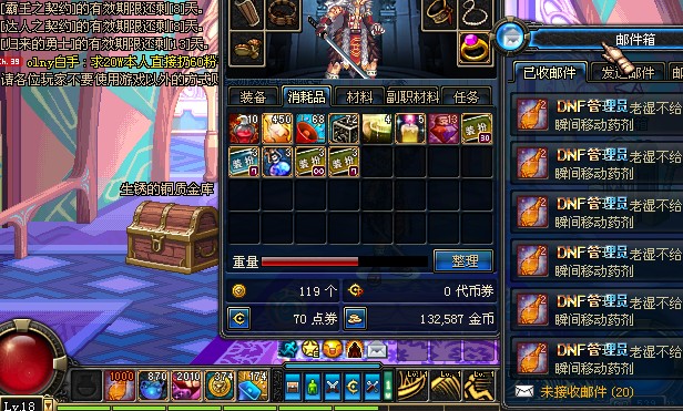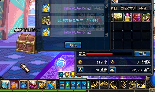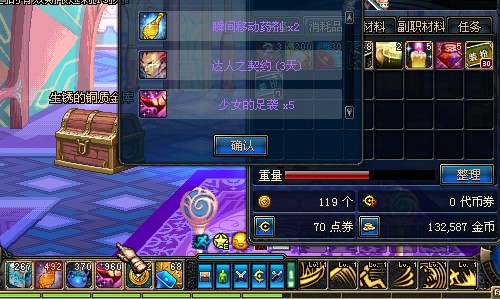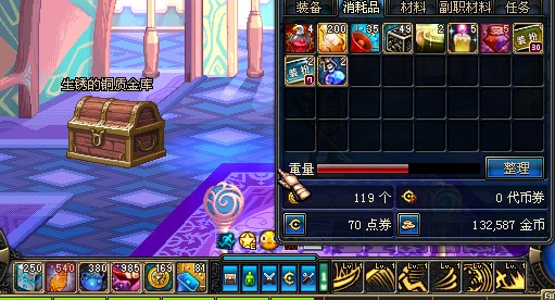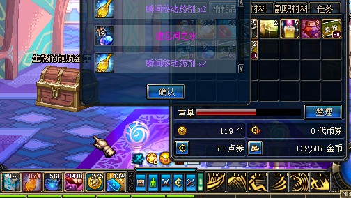 最后50个,开完能睡觉咯,由于瞬移药满了,别的都在邮箱