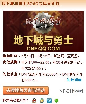 DNFSOSO专属大礼包 搜地下城与勇士领礼包