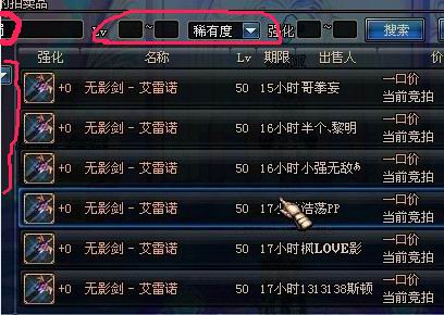 推断:整版都是无影,而且关键字不对,又没有设置搜索范围。从而确定此图搜索的是另一种不知名的鬼剑士武器