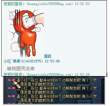 首先在他们的公会群里,基佬(男猪脚)发了一张小红(女猪脚)曾经发过的图