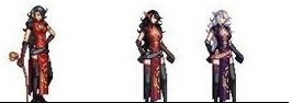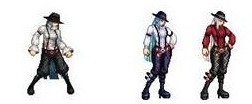 时装造型,是国服首发的原创时装,女枪是疑惑之村的Boss魔女,男格斗是蠕动之城的Boss贝里斯克。
