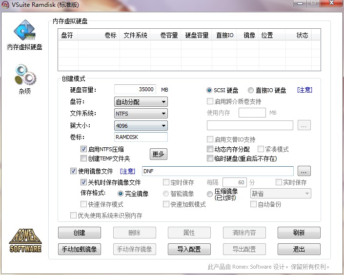 答:因为我们会拥有一款软件“RAMDISK”。他将会把一部分的内存虚拟成硬盘来使用,而虚拟出来的内存将不再是内存...好憋嘴。意思就是虚拟出来的内存在你所有内存里是一直占用的状态。而DNF文件夹总共大小目前是3.2G(将来会更大)。所以至少要分配出3.5G的内存来虚拟成硬盘,才能装下DNF所有文件。