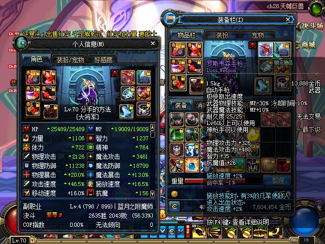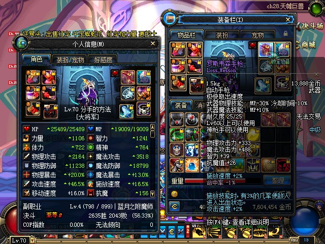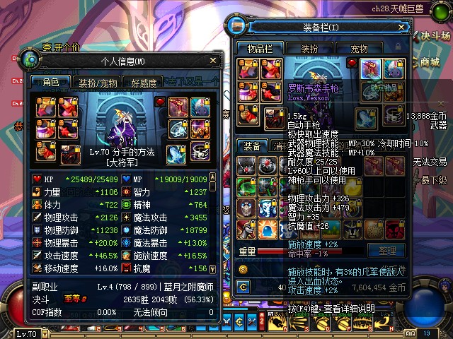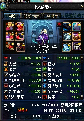 然后这就是选择智力的攻击面板,选了2件智力增加了278的魔攻面板,大家应该思量怎么选择吧,其实释放速度对于刷图来说真没什么影响,所以选择智力才是正确的。