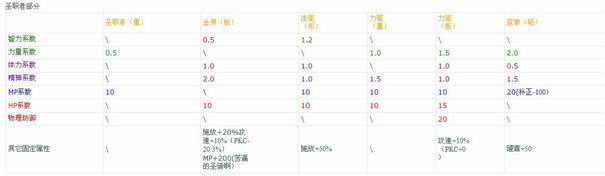 (特别的:对于圣骑士来说没有主属性,智力精通按副属性计算)