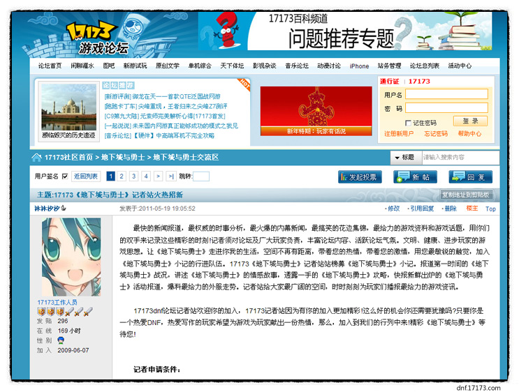 3、加入17173论坛中记者团和MM记者团,完成相关任务,可以获得额外的每月工资奖励。加入记者团