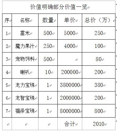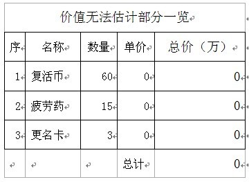 (5)龙力宝珠参照30力量宝珠,理论上应该价值更高。先按380万计算。