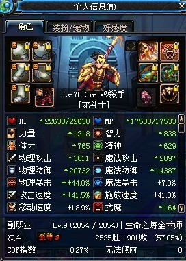 给大家上个属性图,这是我没事玩游戏混到现在的成果。