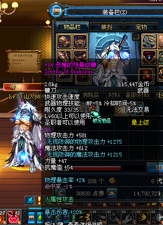 虽然想象中没有楼主预料的好,不过还是要发下来关于测试的结果,本次是在PK服下测试的武器都是强化14的,主要是二把武器基本物功相差不大,在相同强化下无视防御物理攻击也相差不大,所以进行对比测试就相对容易点