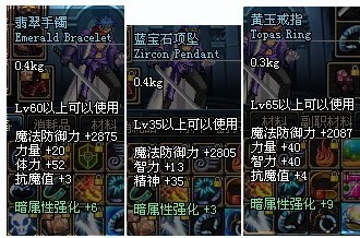 暗黑倾向药剂,6个蓝色首饰(两两相同,包括属性,主要是力量。其中3个附魔暗属性强化)