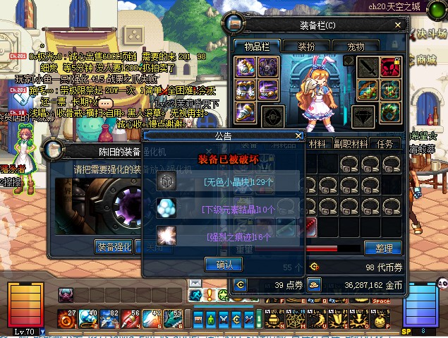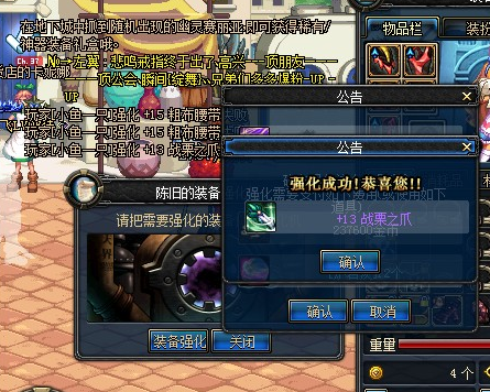 这就不是我等草履虫触摸的范围了,我成功的运气成分也很大,连续丢1个破腰带,+1+2+3+4+5,5上6失败变4,再丢,4上5失败变3,丢+8破腰带失败,丢个+9破腰带失败,丢个12紫垫子,碎,丢吧!
