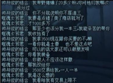 昨天晚上俊与帅带人真野猪,过二图掉路了68粉精灵号角一把,小号淡定拿走,并且没分红,这也直接拉开了这次事件的导火索。