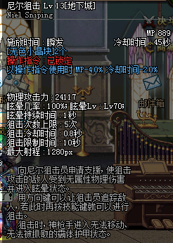 物理弹药的主要技能,魔攻向的可以放弃了,因为没有远古二的支持,大狙的伤害根本不够看,投入那么多SP与得到的伤害完全不成正比,但是通过远古二狙击散件可以把发射次数提高到15发,再通过换装狙击威力,蹲着过图不是梦想