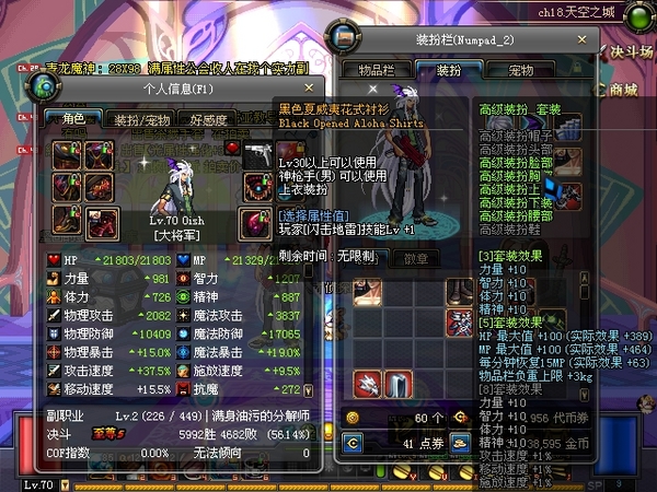先上人物属性、装备、加点,后面为大家分享真野猪、幽灵列车等文字视频攻略。