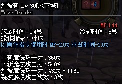同样可以看出:太刀了裂波斩CD是8秒,短剑的裂波斩CD是8.4秒。