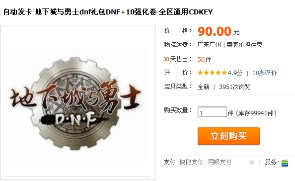 来报个料,活动奖励被私下出售这种事情,经常见到,往往那里活动奖励为游戏中物品的时的CD-key,经常出现在淘宝,5173等交易网站。今早在淘宝逛突然看到+10强化卷的出售,90元一张。如下图: