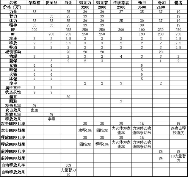 A:依照上表,高级称号对比领主称号,属性各有优劣,估价在1200W以上;白金称号无可比性,保守估价在1800W上下。
