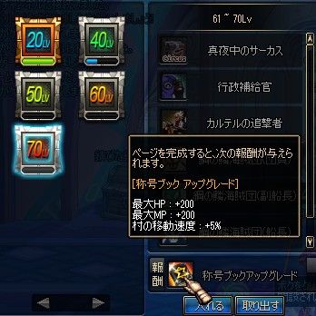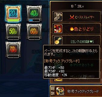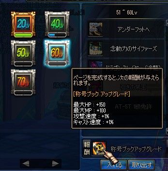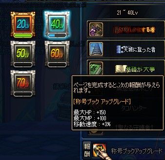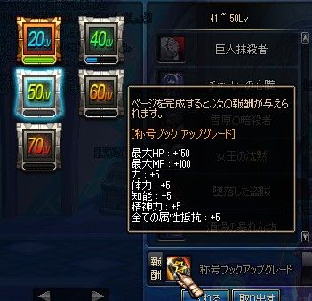 称号ブックの能力値アップグレード : 一般業績ページの完成時毎に得られ、称号ブックの能力値をアップグレードします。