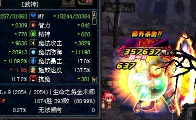 烟雨:力量1325、757、70、强拳276+3,5186,火强化18