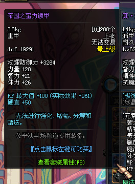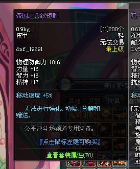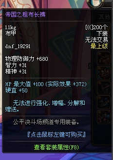 DNF国服公平决斗场装备一览: