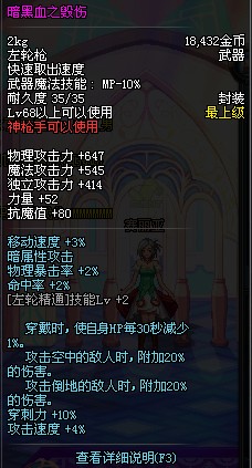 超高的基础攻击,天然呆暗属性,2级精通,各种加速和穿刺,用过的同学都说好