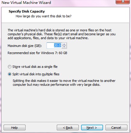 第四步,中间如果没截图的就一直下一步可以了,硬盘大小选择20G足矣,只玩DNF,如有别的需要请自行调整
