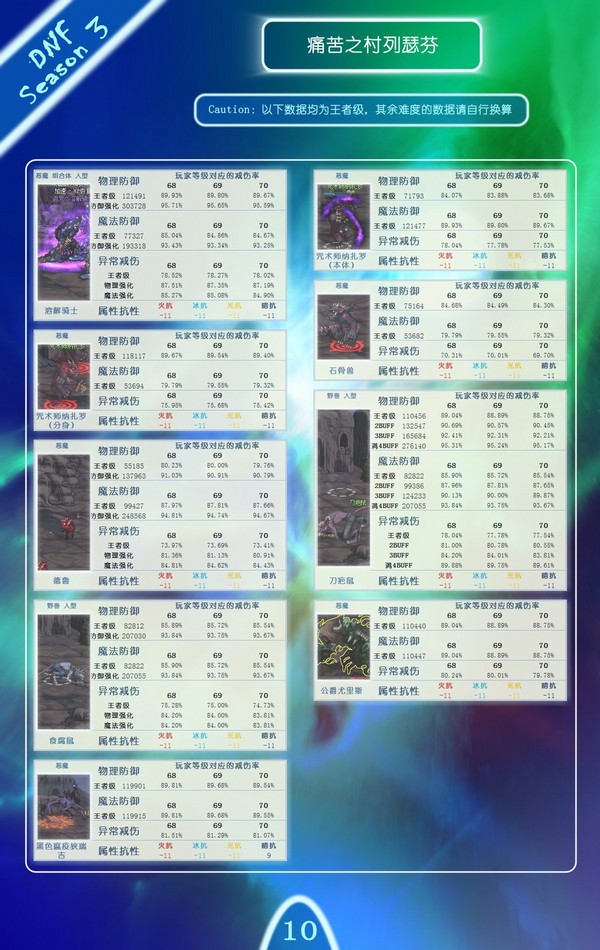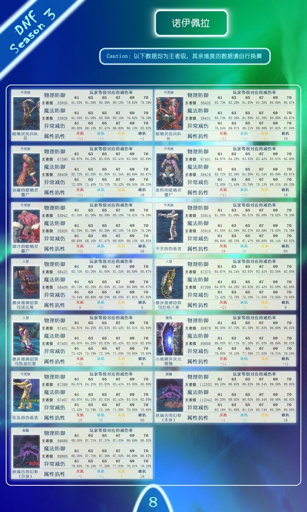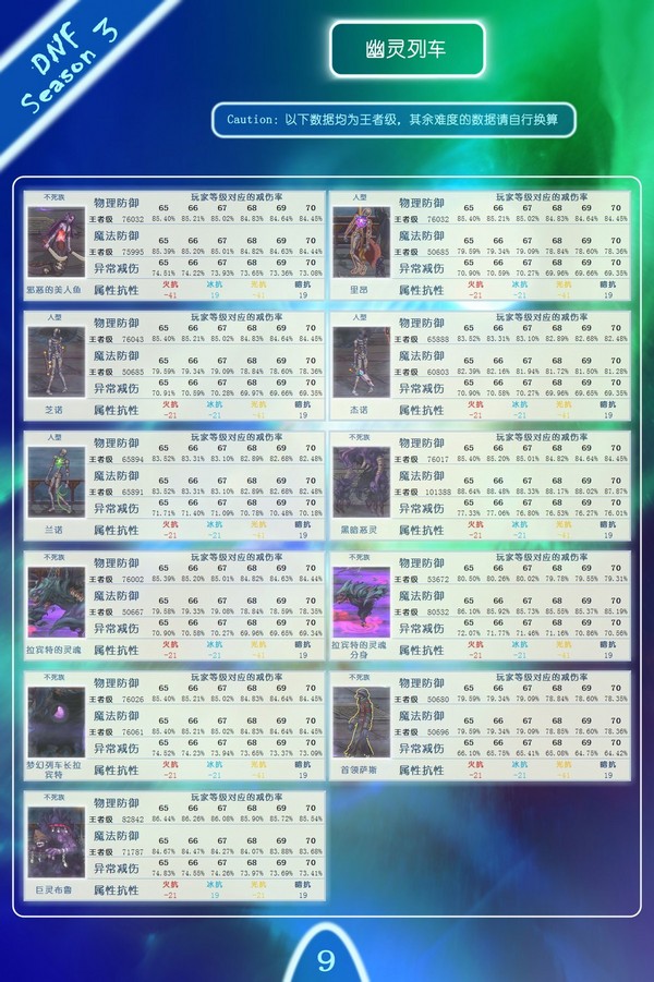 不死族魔防直接看面条的重测吧 我自己整理的一个表格
