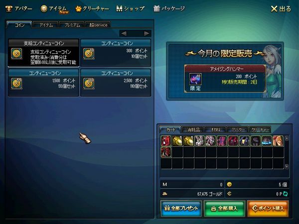 最上面那排的大M,可以使用M点券购买物品。图片神奇的丢了,没办法。