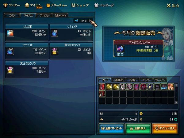 日服的商城跟其他服的版式差别较大。首先有个限时销售物品