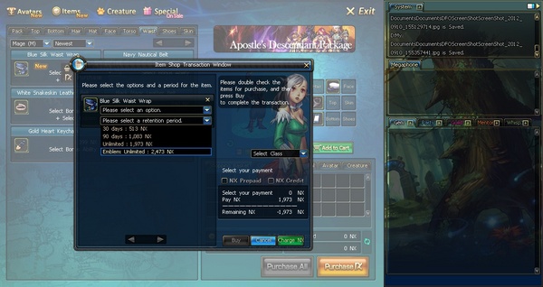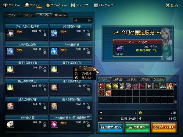 时装:韩服很早就取消了期限时装和低高级时装,购买时有两种选择:是否可以分解。可分解的要贵些。