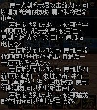 ⒈光剑精通:平民白手主修的精通,光剑里鬼搭配上挑可以对怪无限浮空连,光剑的主要优势在于攻击次数;