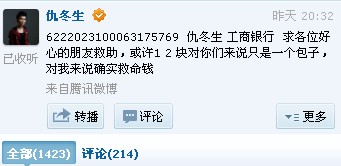 昨日,国服第一魔道仇冬生在自己的腾讯微博上发布了一条求助消息: