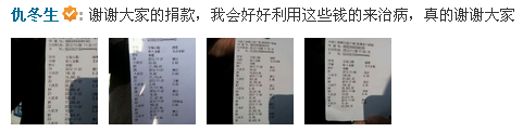 采访之后,仇冬生在微博上上传了热心网友捐款的明细: