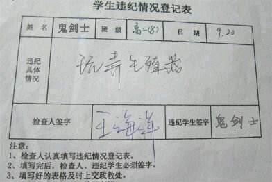 这学生真调皮,突然想起在学校的时候有人在违纪单上写刘德华~通告批评的时候笑尿了~