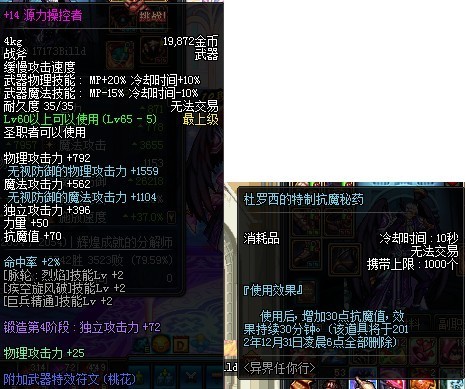 左槽:+0泰达的酒杯 附魔12攻 红字力量+6