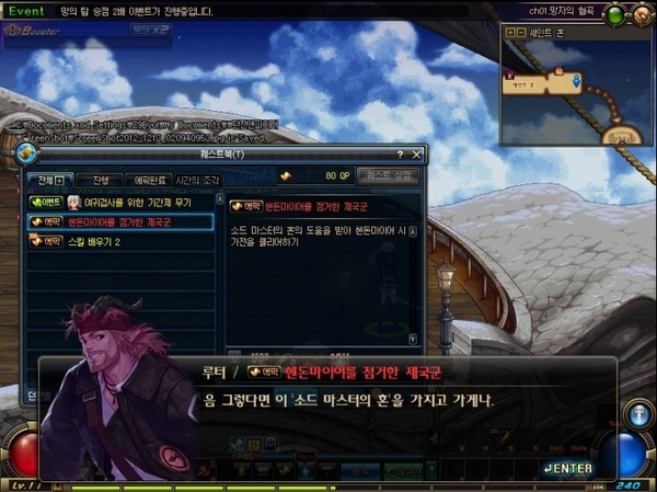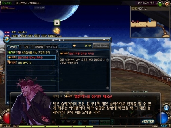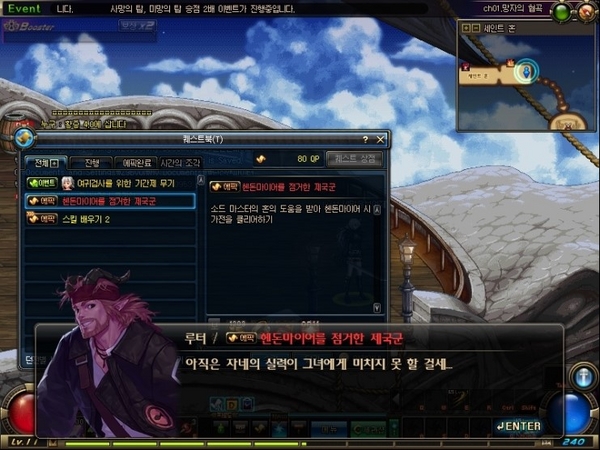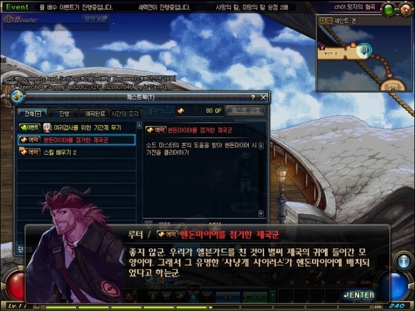 船长路特:情况不妙了.好像我们消灭掉艾尔文森林里的帝国据点好像被帝国有所察觉,帝国派遣了猎犬塞勒斯(这个BOSS是个恶魔猎手)来镇守赫顿玛尔