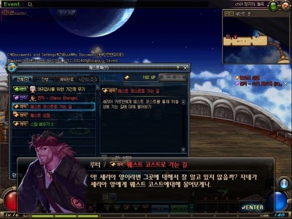 赛丽亚房间出来后发现自己已上了贼船,整座船上除了船长就看见这位名曰迷路的战士的NPC,提供给你装备强化和装备分解(你这个混蛋老实交代!你是不是凯利的马甲!)