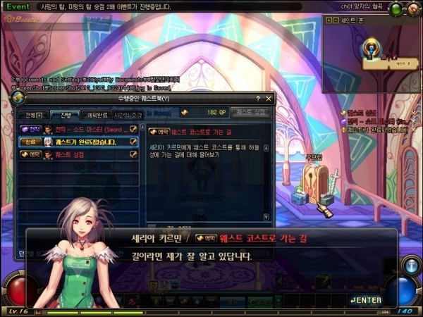 *女鬼剑玩家在完成新手推荐任务后(救出经常被绑架塞莉娅),不会传送到赫顿玛尔开始主线任务,而是移动到全新区域圣徒号上开始她的故事。