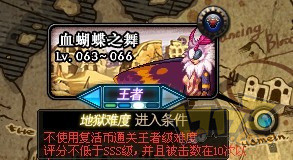 不同地图,开启地狱难度要求不同,如血蝴蝶需要王者级难度评分不低于sss,且被击数在10次以内