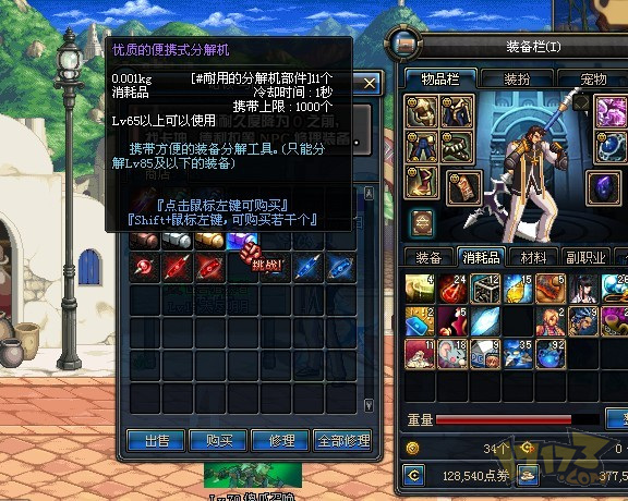 所有副职业新增破旧、普通、坚固、优秀四种专属分解机。不同分解机不同等级装备(如:破旧(45)、普通(55)、坚固(65)、优秀(75)。)可以分解出各个副职业所需材料。如冒险家的灵魂、溶解剂以及送礼的那些材料。