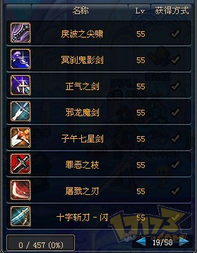 鬼剑武器:万剑之王、戾波之尖啸、冥刹鬼影剑、正气之剑、邪龙魔剑、罪恶之枝、十字斩刀闪、班图的**、冥玉惊魂刀、灵魂伴侣-雷电、血饮红蛇、天脊骨狱息、霜寒之魄