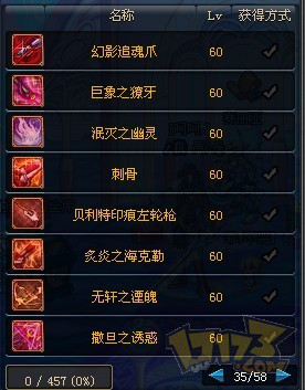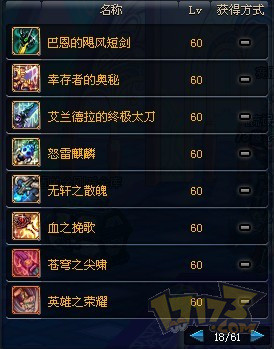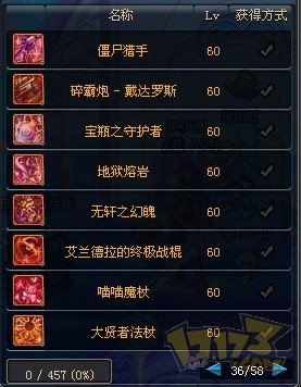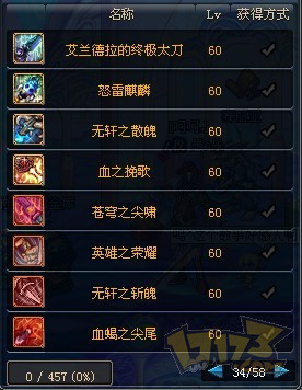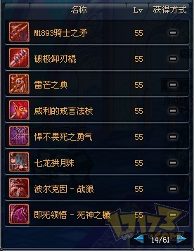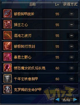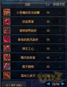 大叔武器:席蒿待罪、神域之信念、千念之珠、玄天诛、邪灵之右眼、圣裁之狂暴图腾、小恶魔的狡诈战镰、汲血冥者、泰坦的疾风战斧、飓风粉碎者、霜天鹤戾