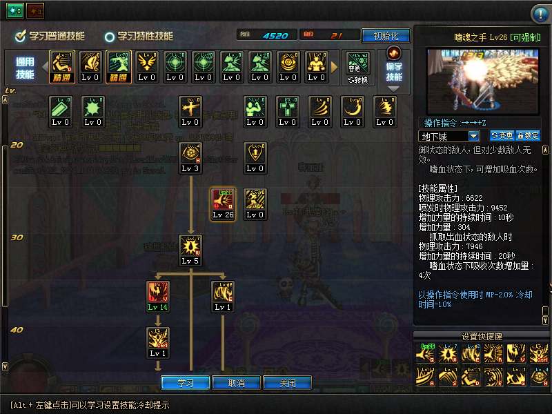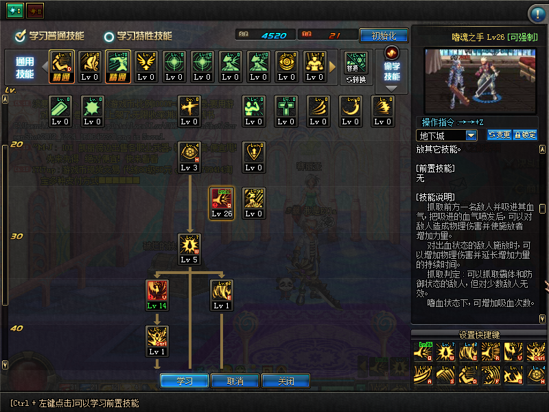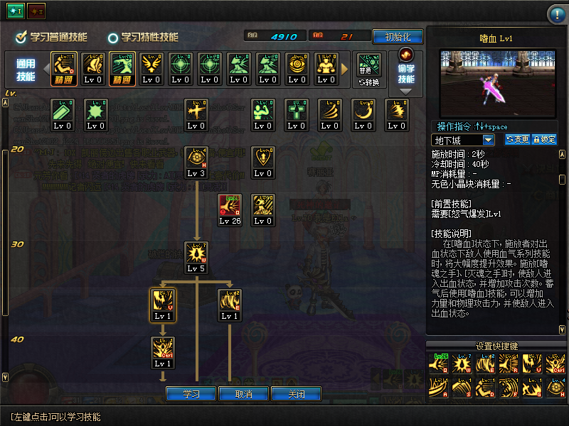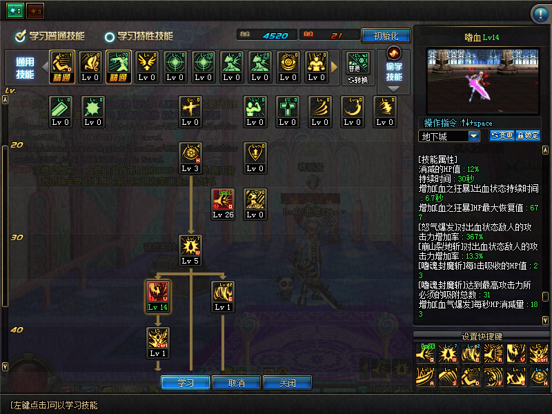 下面是只点了前置技能的技能树。注意觉醒说明: