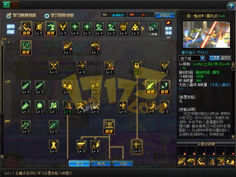 首先是剑魂的技能树整体一览(翻页可以看到每个技能的数据截图),目前人物等级为70,有契约,技能能学习到75级,以下所有技能截图的满级是75级。