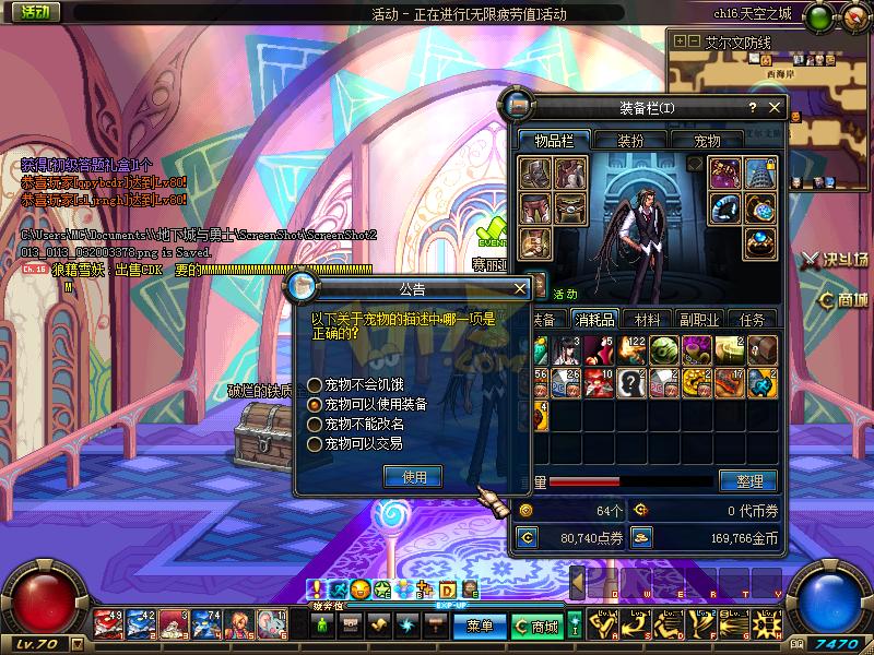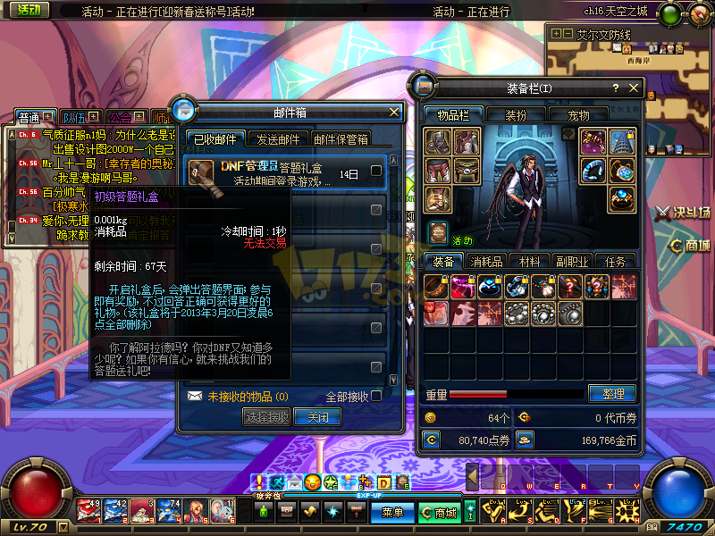 DNF体验服在1月12日再次更新80版本后,上线了新的活动:在线答题和砸冰雕。